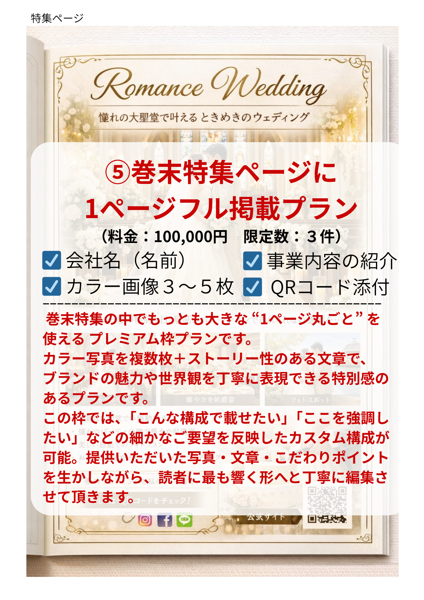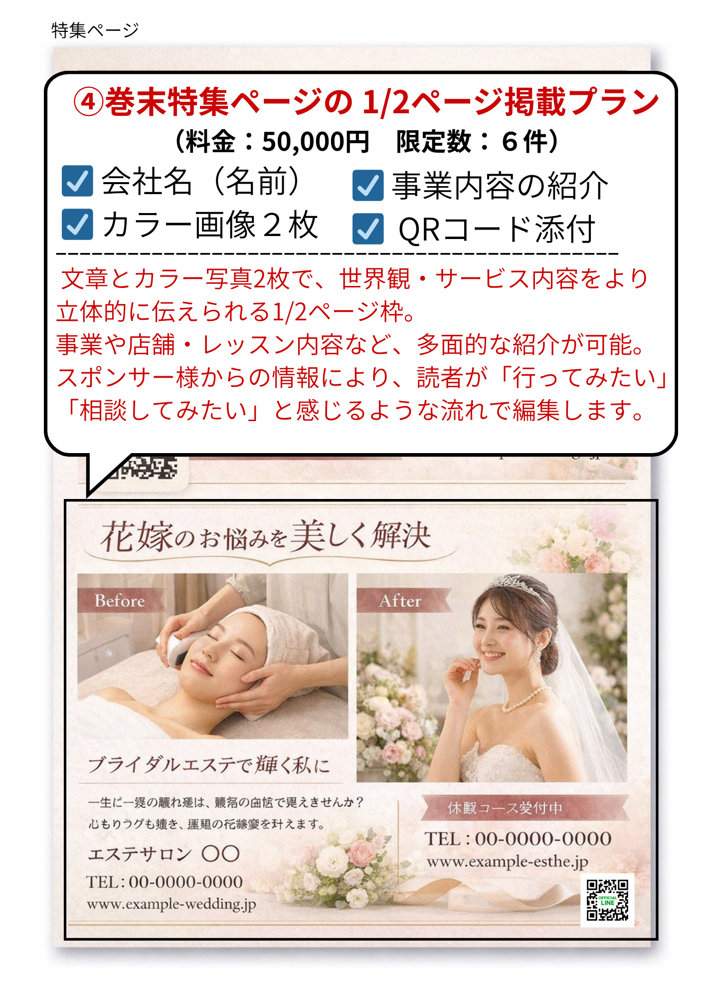 【4】巻末特集ページ 1/2ページ掲載(文章+写真2枚)(50,000円)