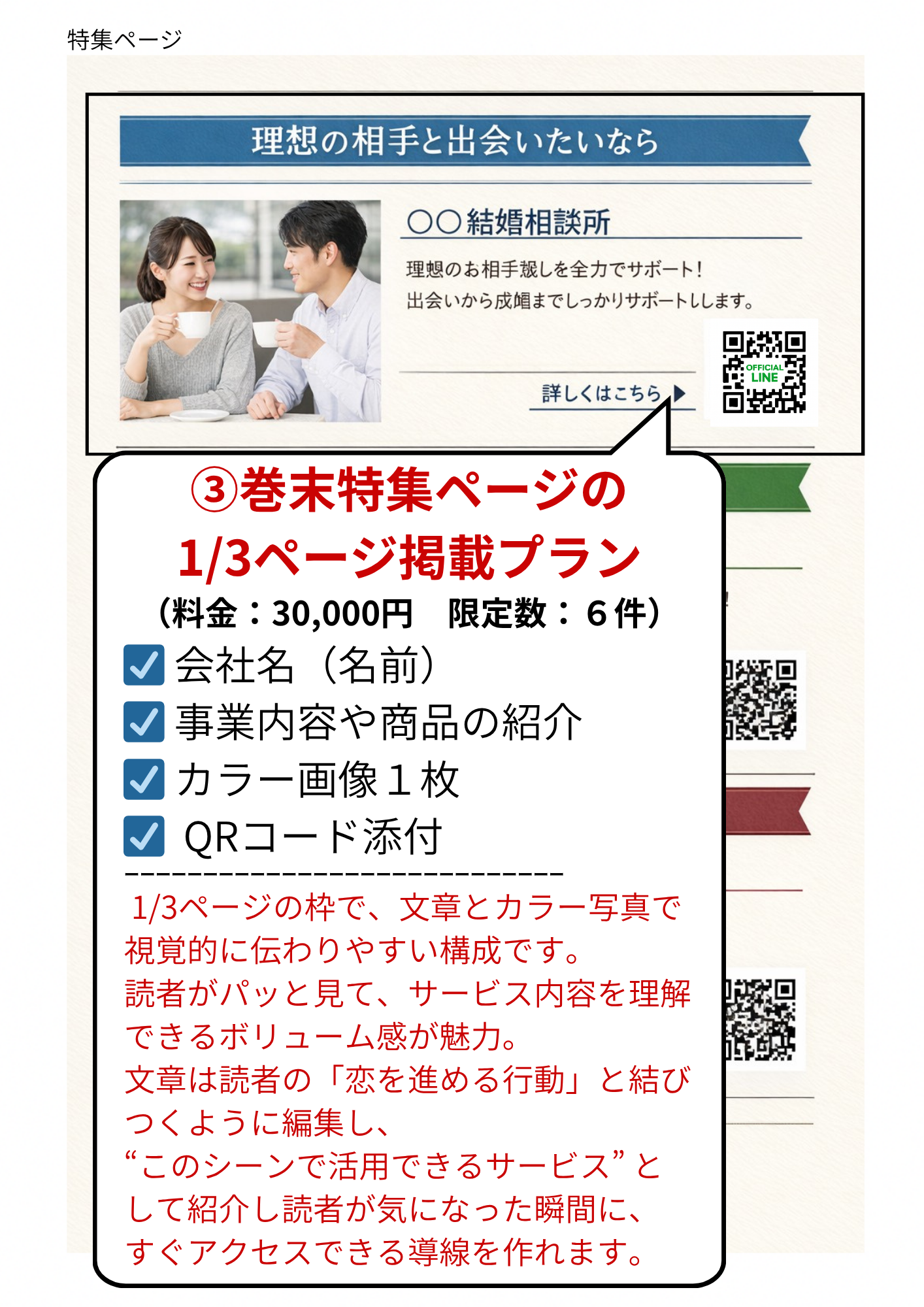 【3】巻末特集ページ 1/3ページ掲載(文章+写真1枚)(30,000円)
