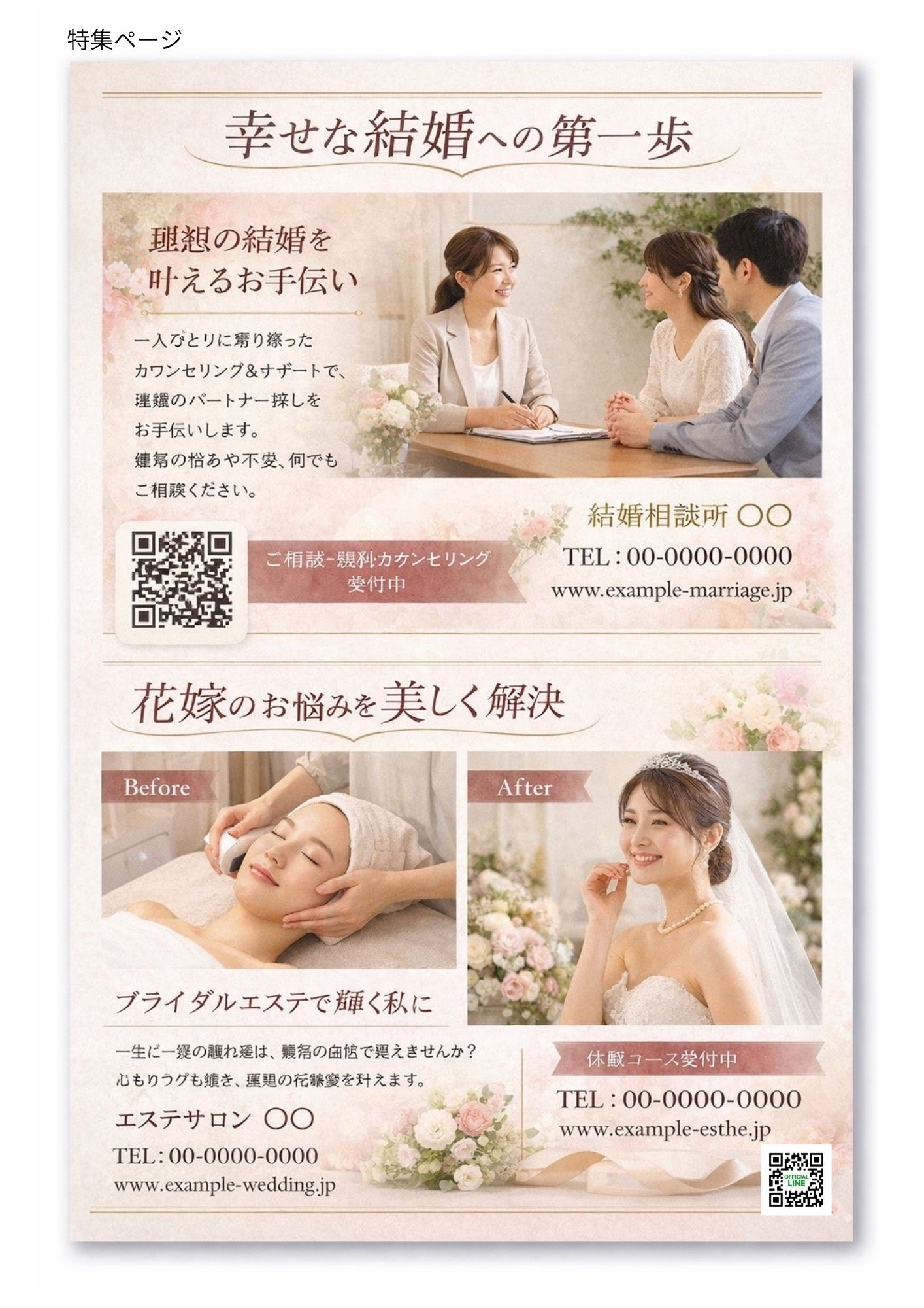 文章+写真構成は、スポンサー様からの情報頂き、こちらで構成。読者が「行ってみたい」「相談してみたい」と感じるような流れで編集します。