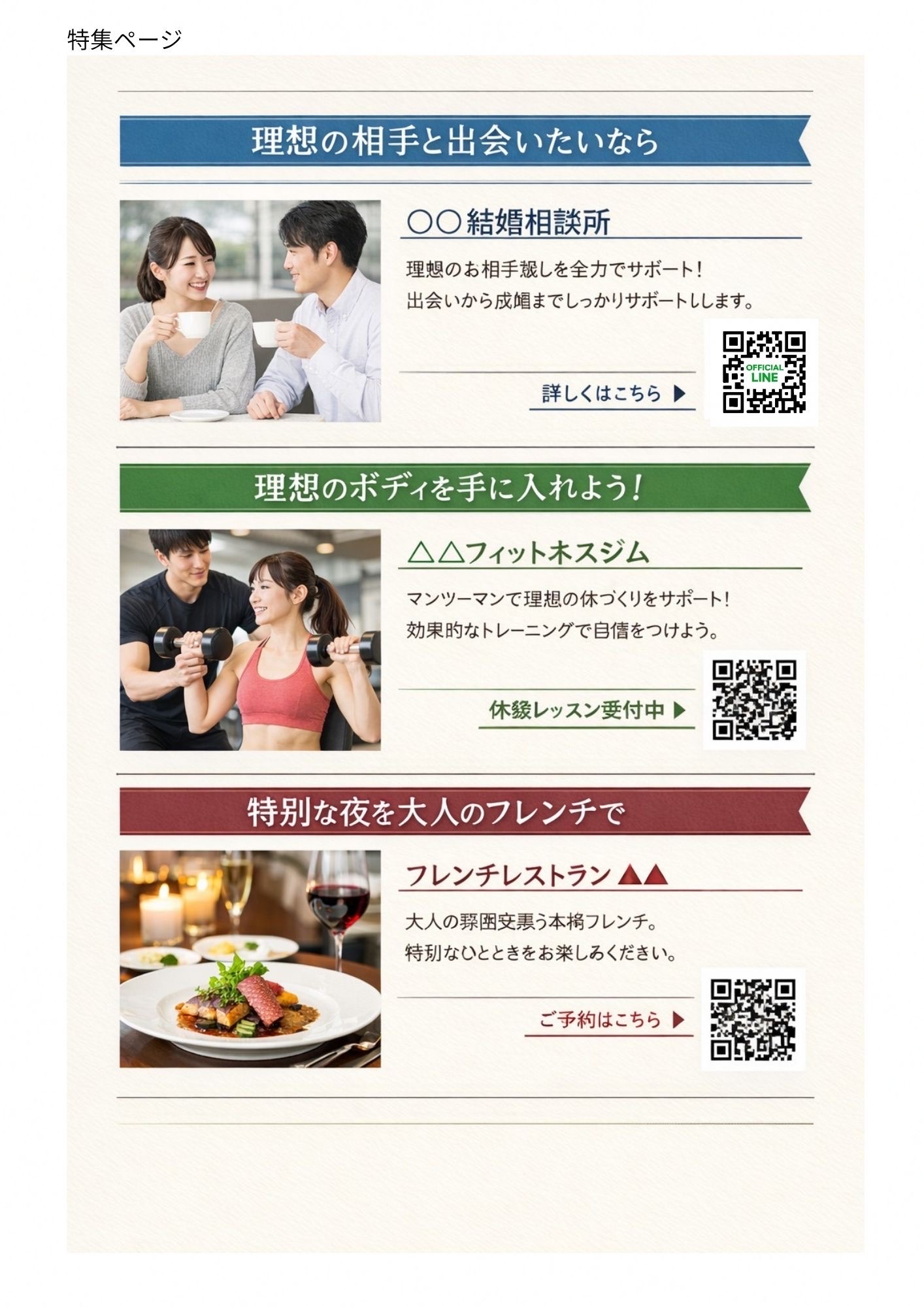 4.巻末特集ページ1/2ページに企業名(お名前)と紹介文を掲載