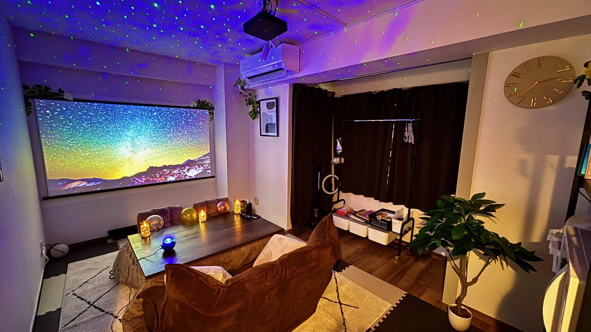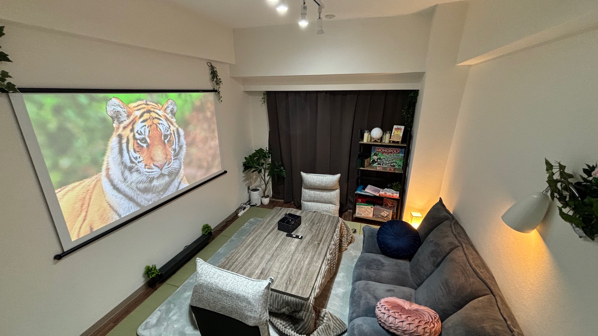 大きなスクリーンやテレビ、サウンドバーを設置し、映画鑑賞やライブ視聴などの推し活で好評をいただいています。