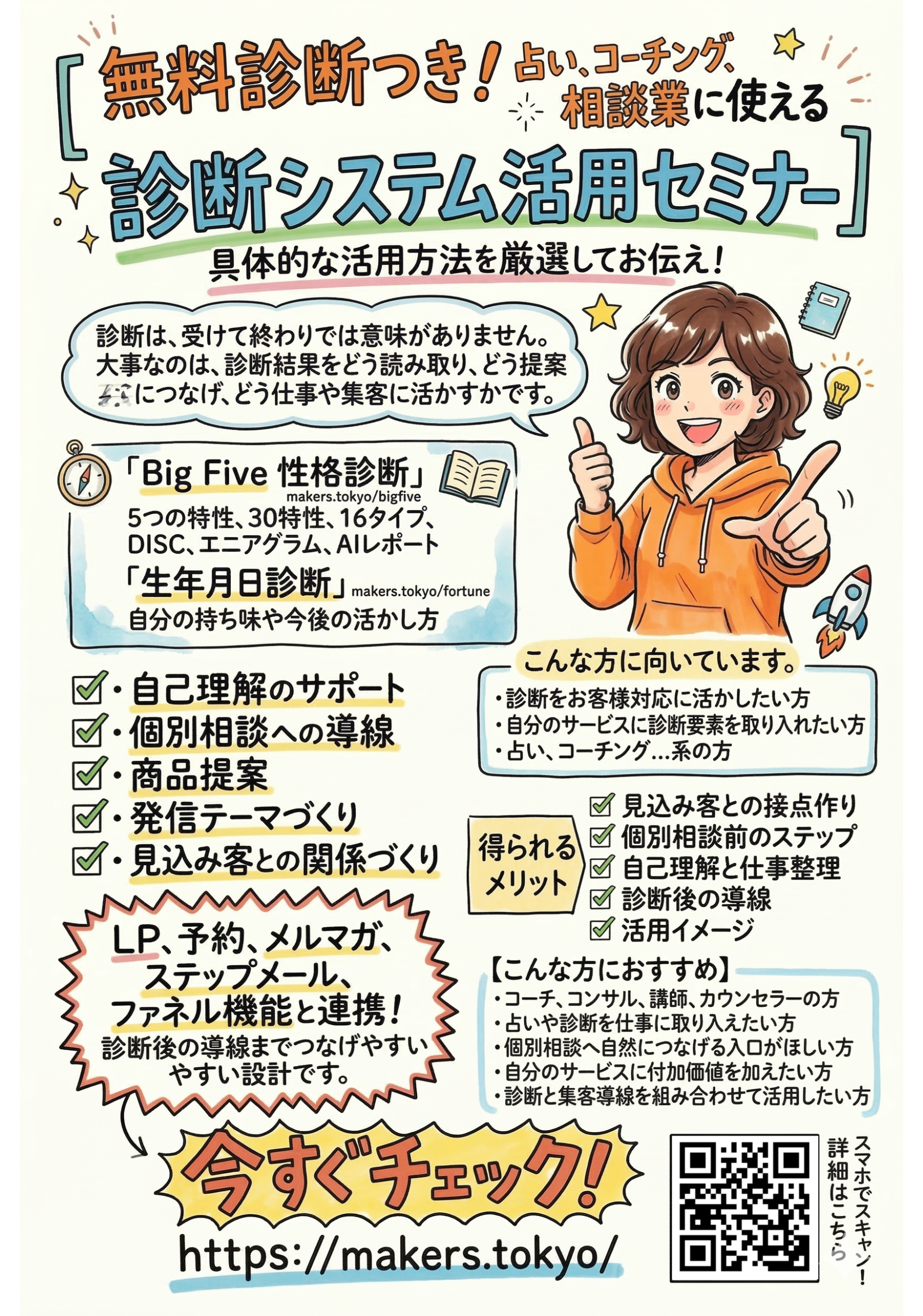 集客メーカーにある「Big Five 性格診断」「生年月日診断」の診断が無料で行えるツールを開発しました。