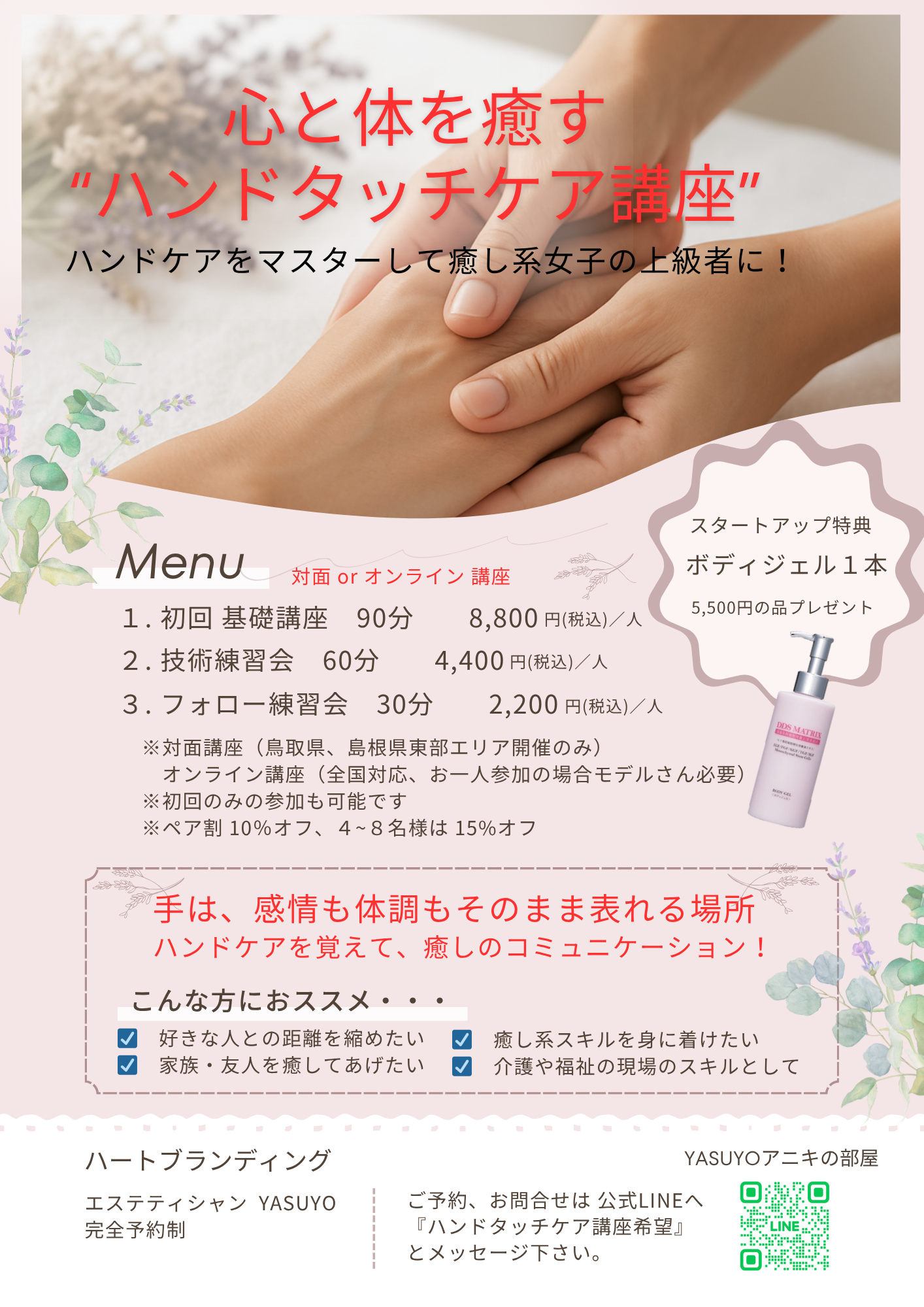 「ハンドタッチケア講座希望・LINK会員」とメッセージを送信下さい。