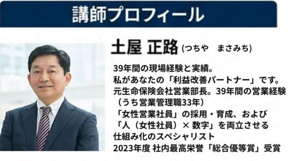 ・元生命保険会社 営業部長 で、営業経験39年 うち営業所長経験33年