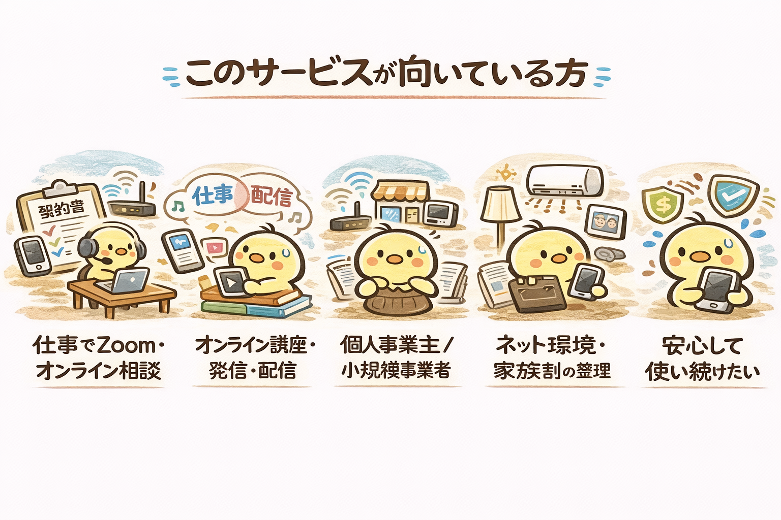 いまの通信生活を整理し、仕事にも生活にも無理のない形に整えたい方に向いています。
