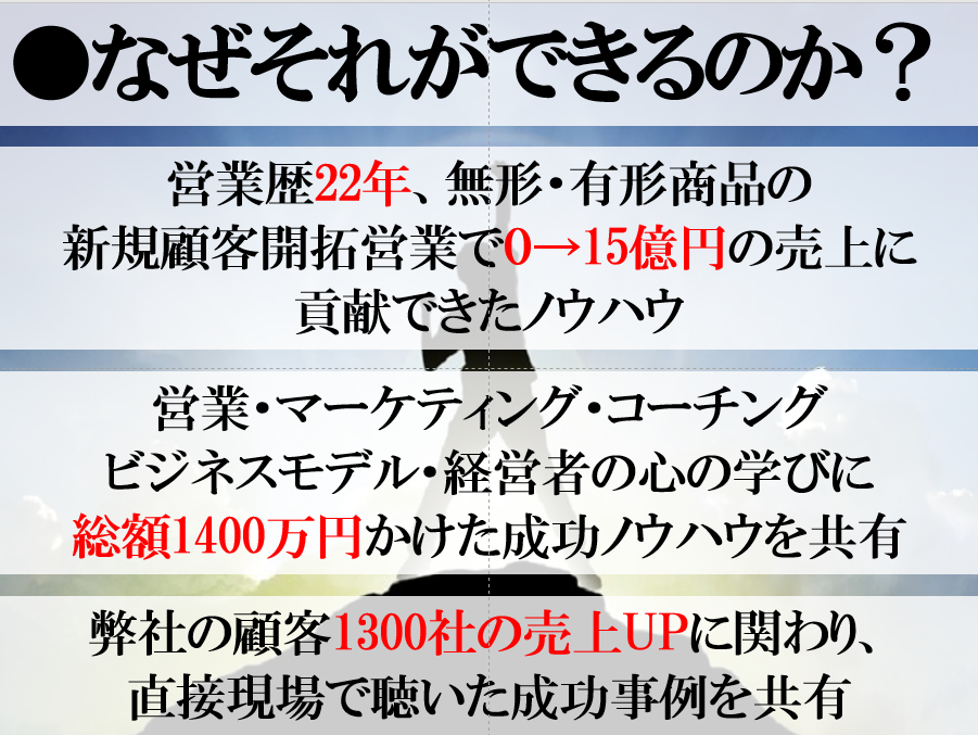 0から1を自力で売れるためのノウハウを全て教えます。