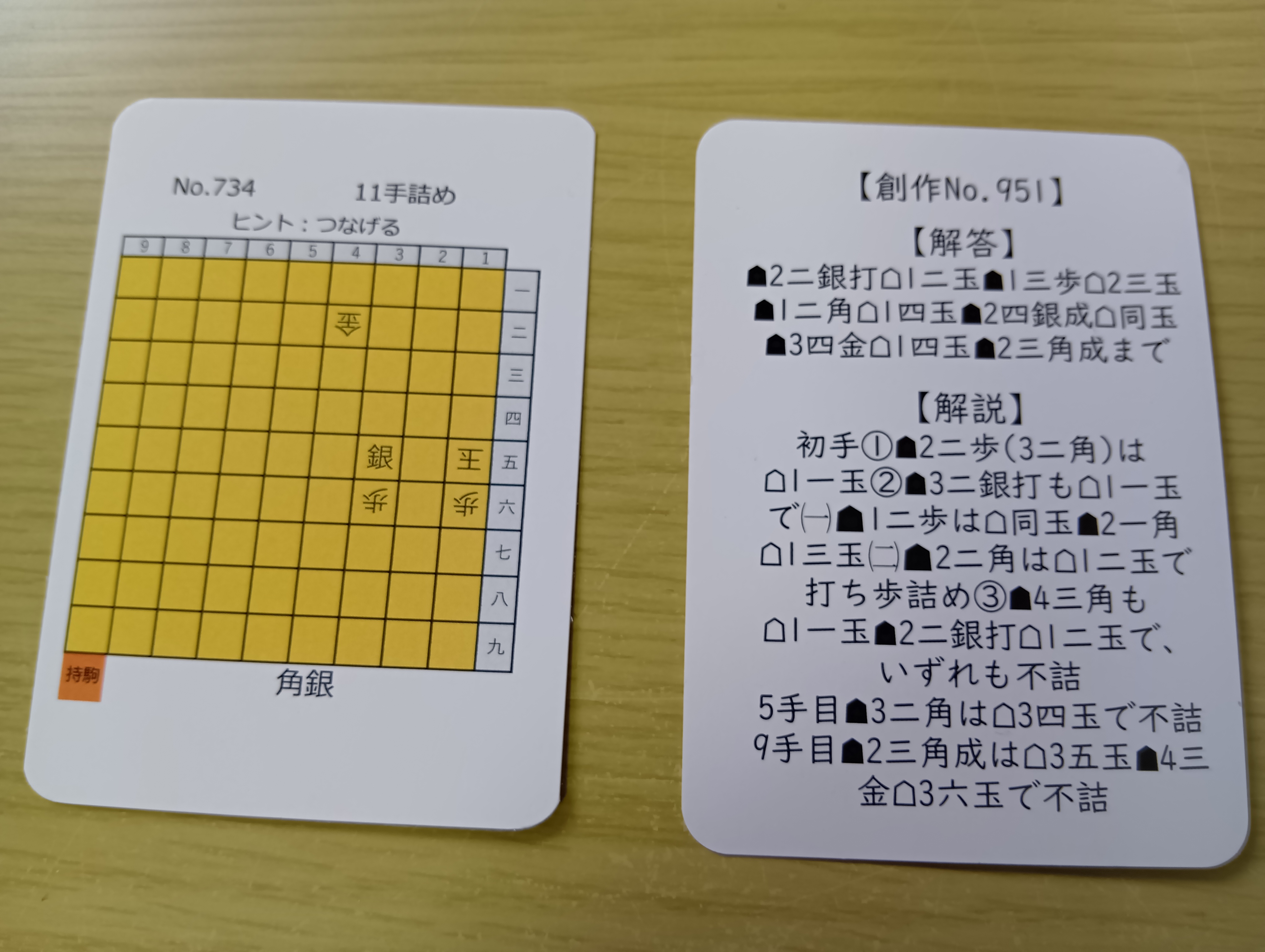詰将棋作家・小野精一郎(yuru_shougi)が制作した、9×9盤の“実戦型”詰将棋カードです。