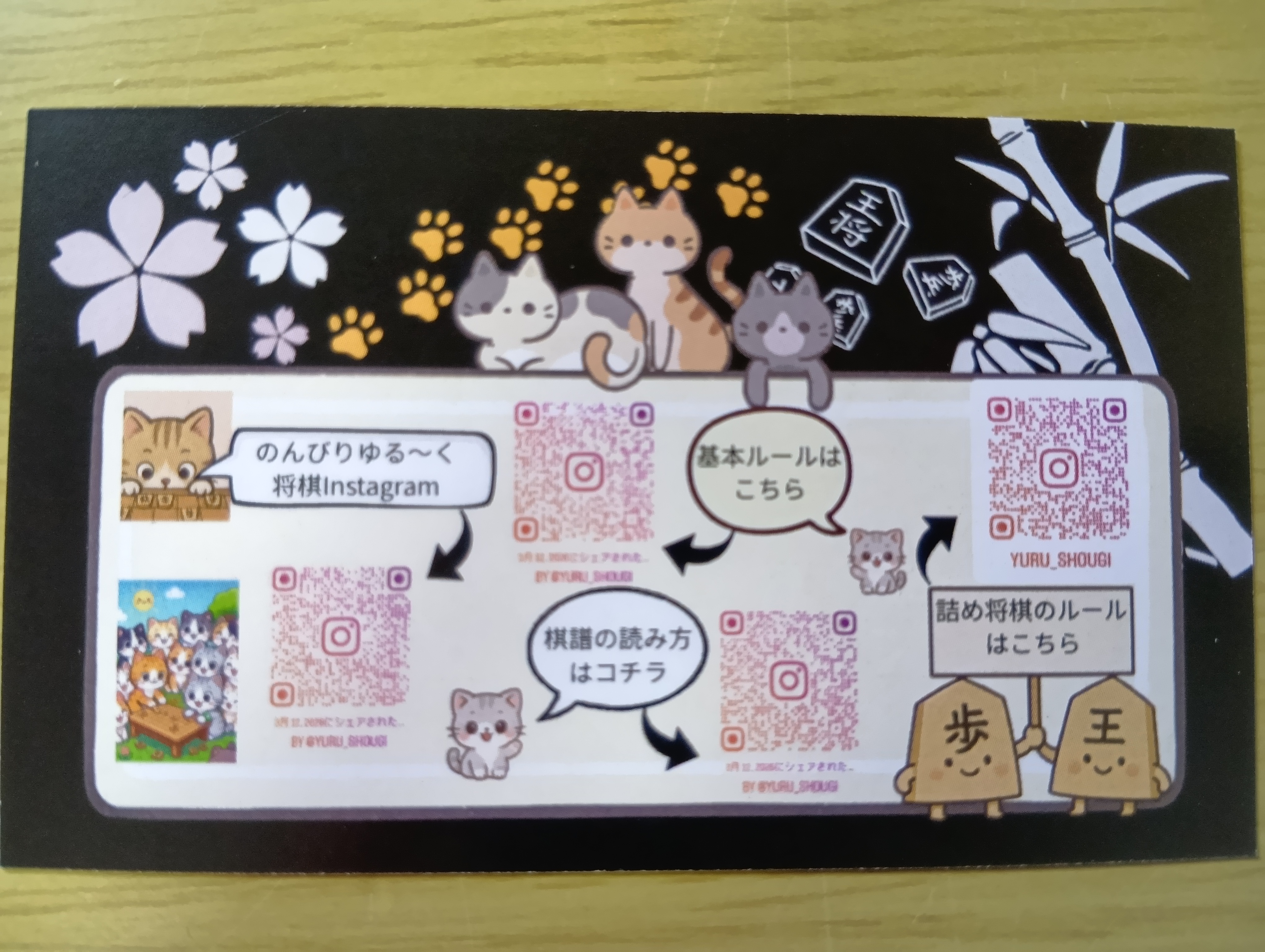 ・作者名刺(Instagram QRコード付き/詰将棋の説明書・棋譜の読み方などへアクセスできます)