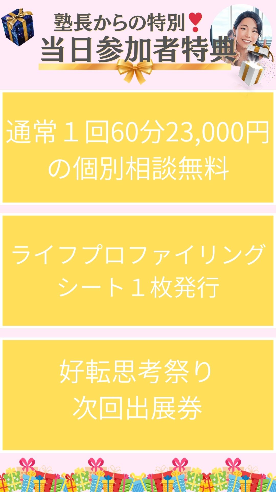 LINK BASEからの申込限定で祭り終了後個別相談(通常1回60分23,000円)を無料(希望者のみ)