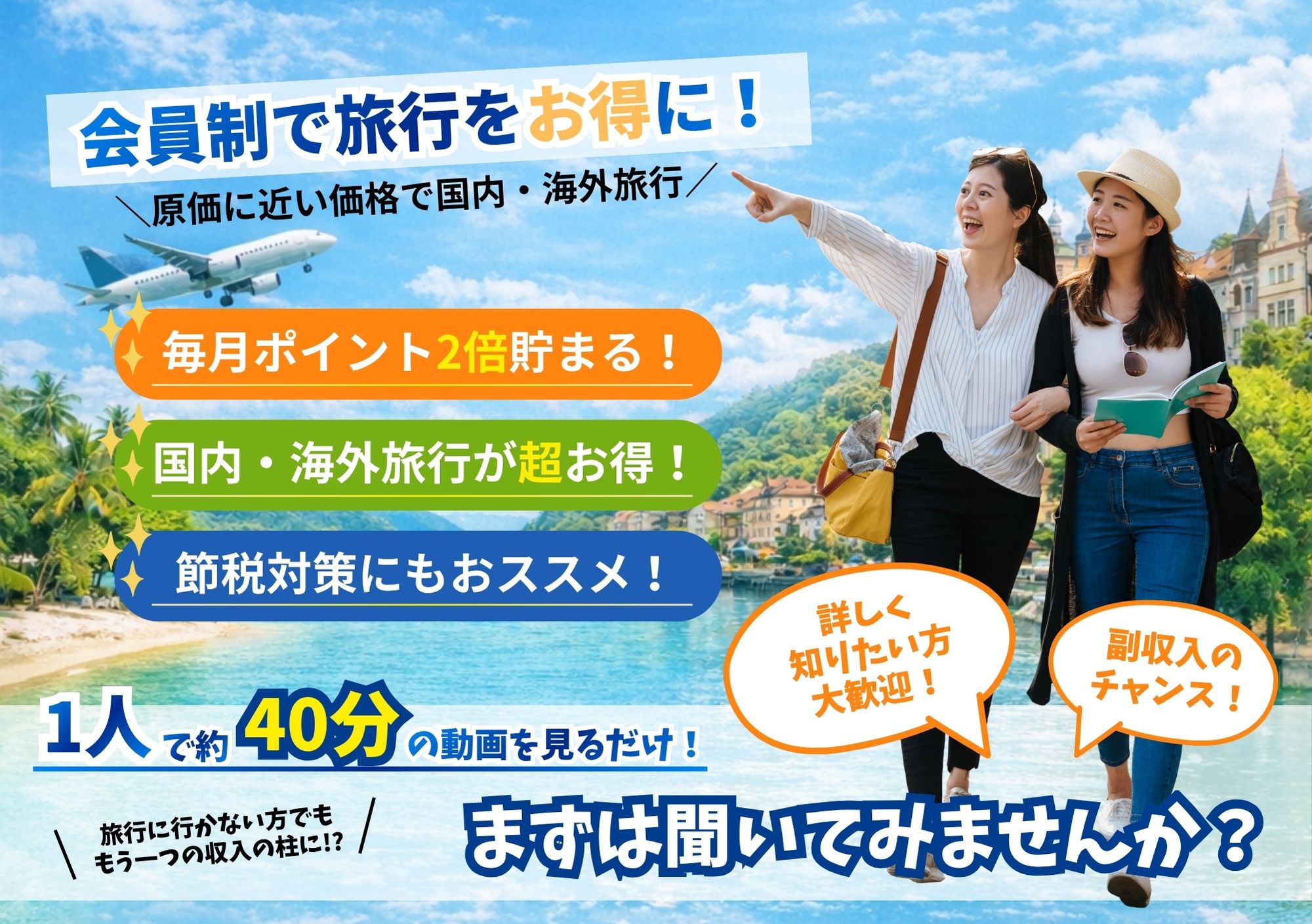 会員制で“原価に近い価格”で旅行ができるサービスをご案内しています。