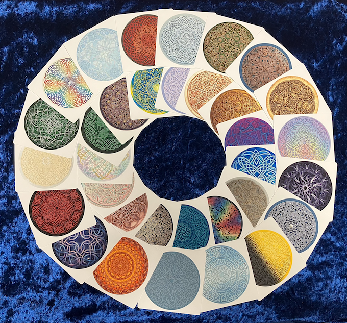 一枚一枚に異なる幾何学模様とメッセージが込められています。