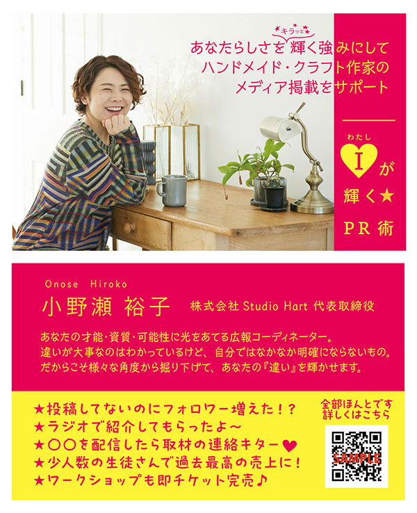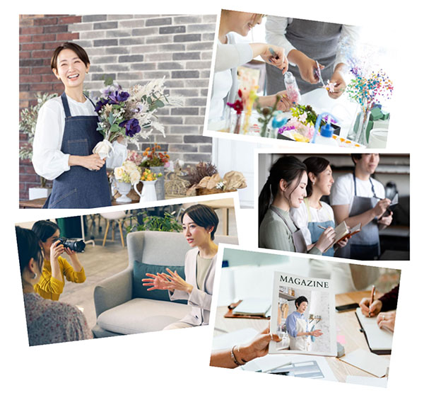 雑誌やテレビに載って認知度アップ、生徒さん集客、作品の見せ方や展示会のコンセプト作り、出版についてご相談を受けています。