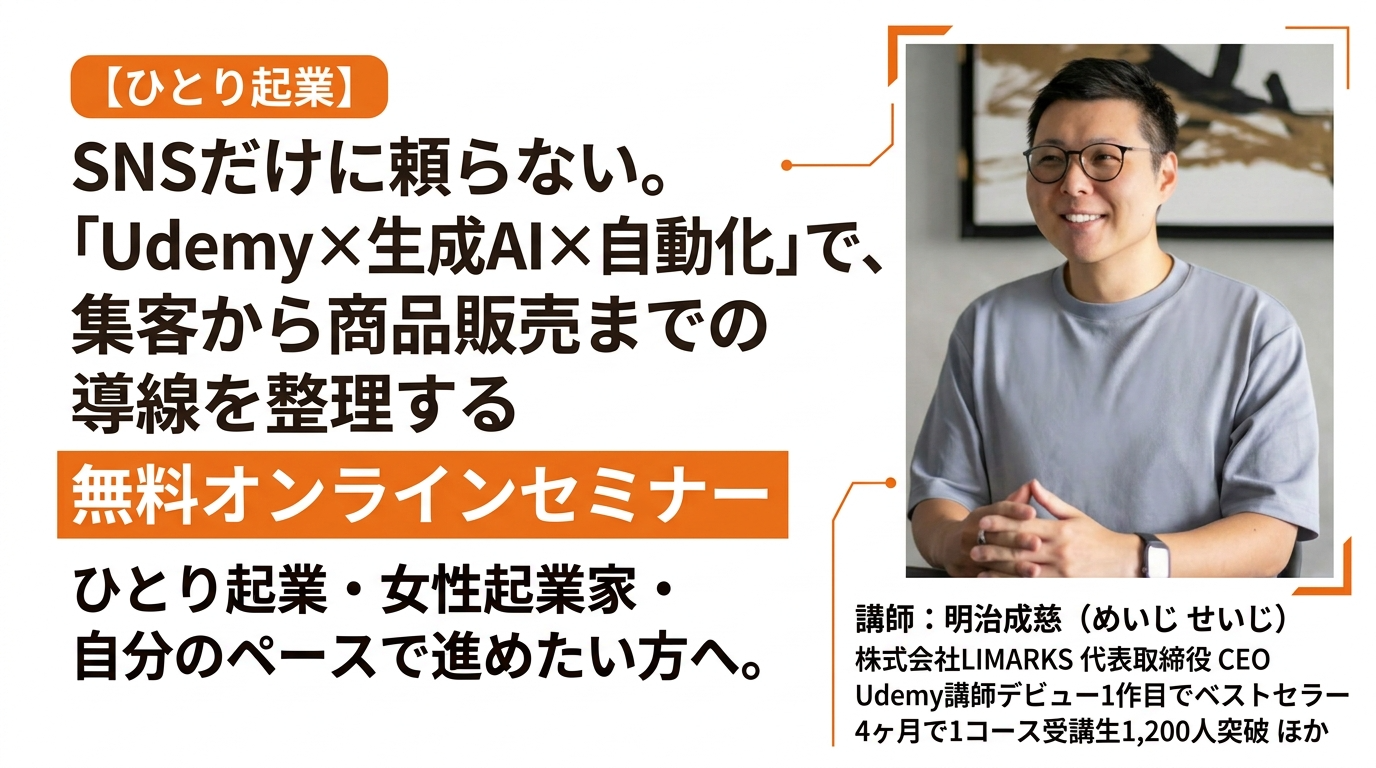 【ひとり起業向け】Udemy×生成AI×自動化セミナー