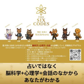 ◆誰よりも自分のことがわかっているつもりでした。去る者追わずで来るもの拒まずというスタンスで生きてきました。でもSIX CODES診断士になってみて初めて