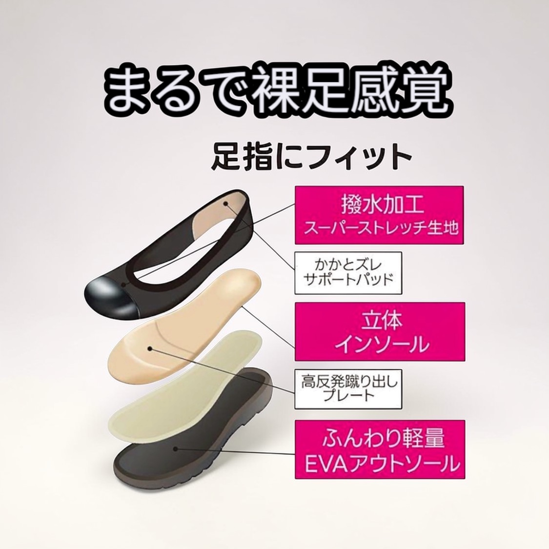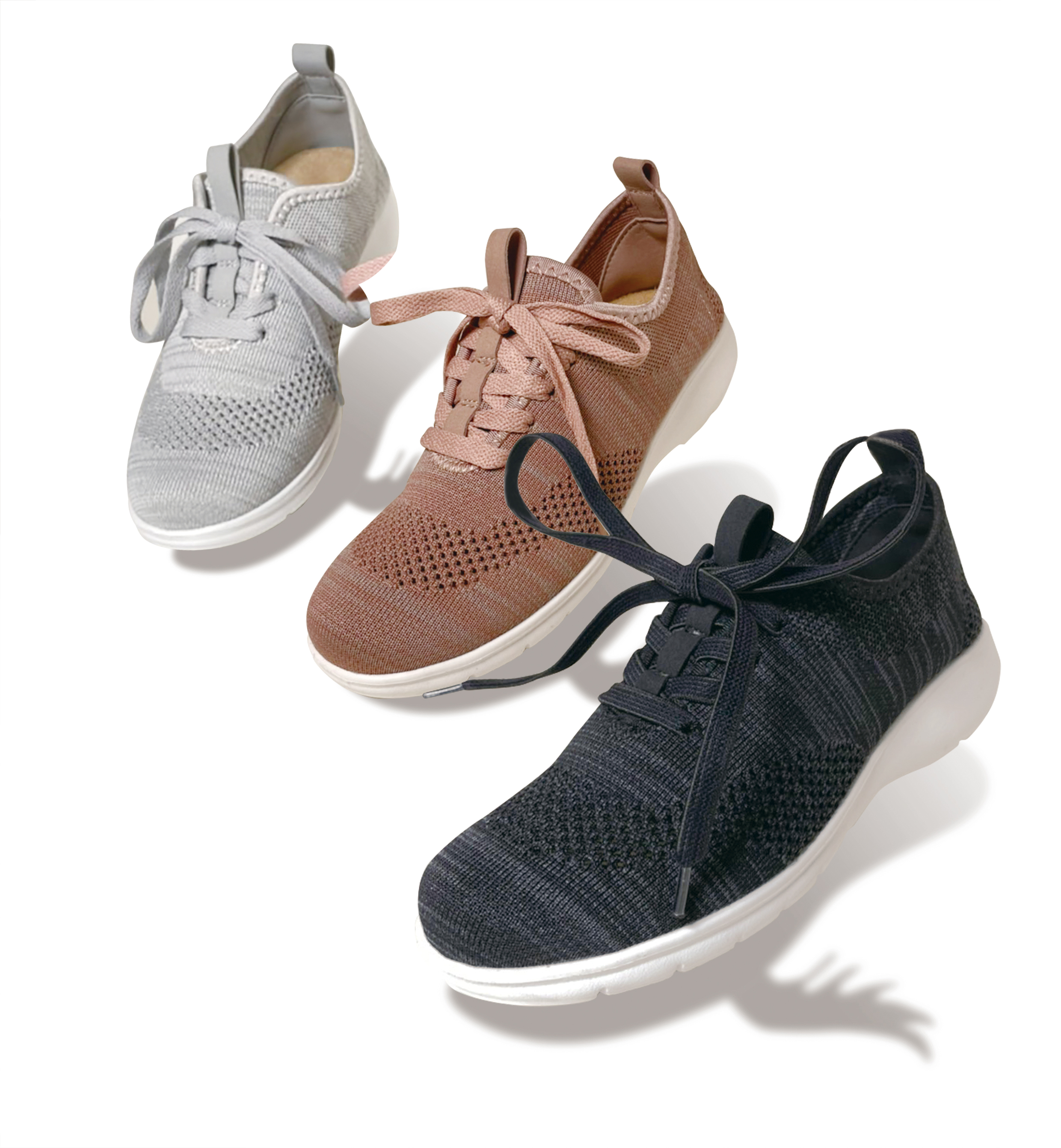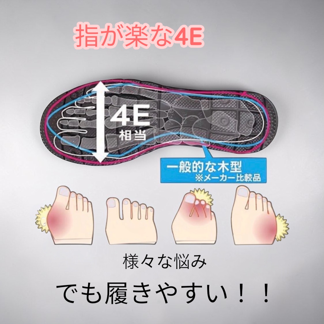 ストレッチ素材で外反母趾など足の悩みを持つ方にも優しくフィットし、長時間履いても疲れにくい!