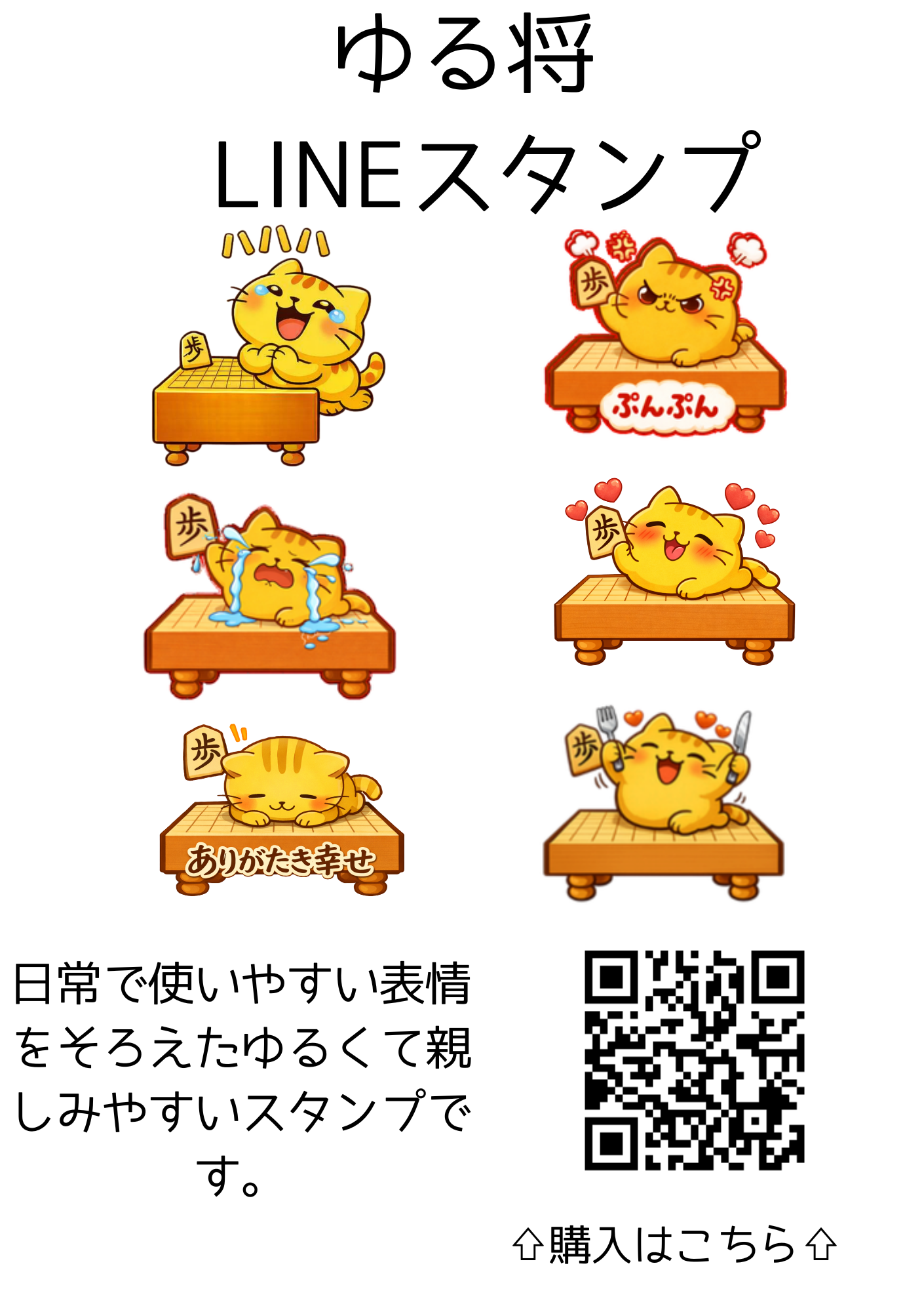 ゆるいタッチで描かれたキャラクターが、 ちょっとした気持ちやリアクションをやさしく伝えてくれます。 将棋好きの方はもちろん、キャラクターとして楽しみたい方にもおすすめです。