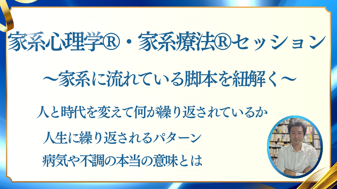 このセッションは、人生の悩みの原因を「個人」ではなく「家系」という視点から紐解くものです。