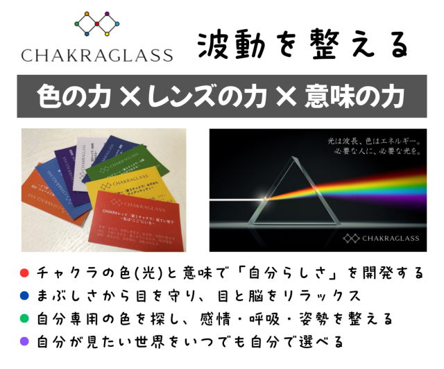 目に見えにくい人の成長や変容の支援と、目に見える眼鏡を「色(カラーレンズ)」でつなぐ眼鏡CHAKRAGLASS。