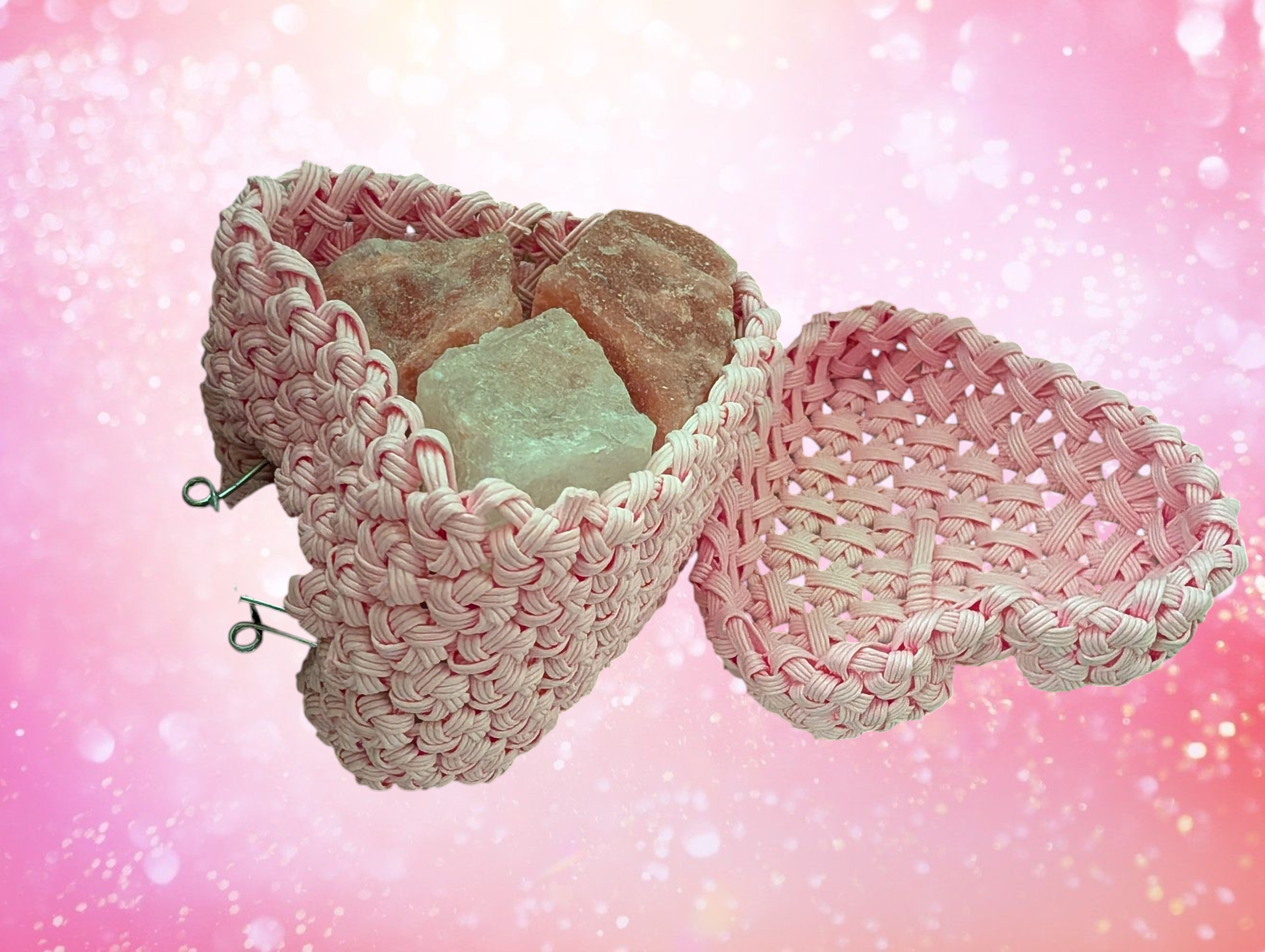 クラフトバンドで作製したバッグ、ヒマラヤ岩塩ランプ、猫耳、帽子、名刺入れ、アロマオイル入れなど。