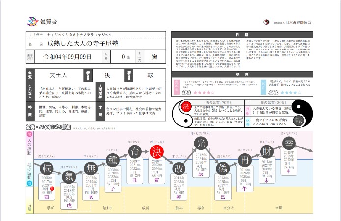 LINK会員様は無料にて実施させていただきます。(陰陽六行気質表付)