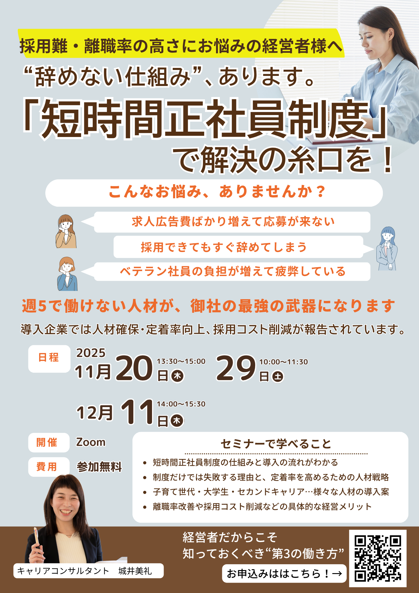 人材流出を防ぐ「短時間正社員制度」導入セミナー