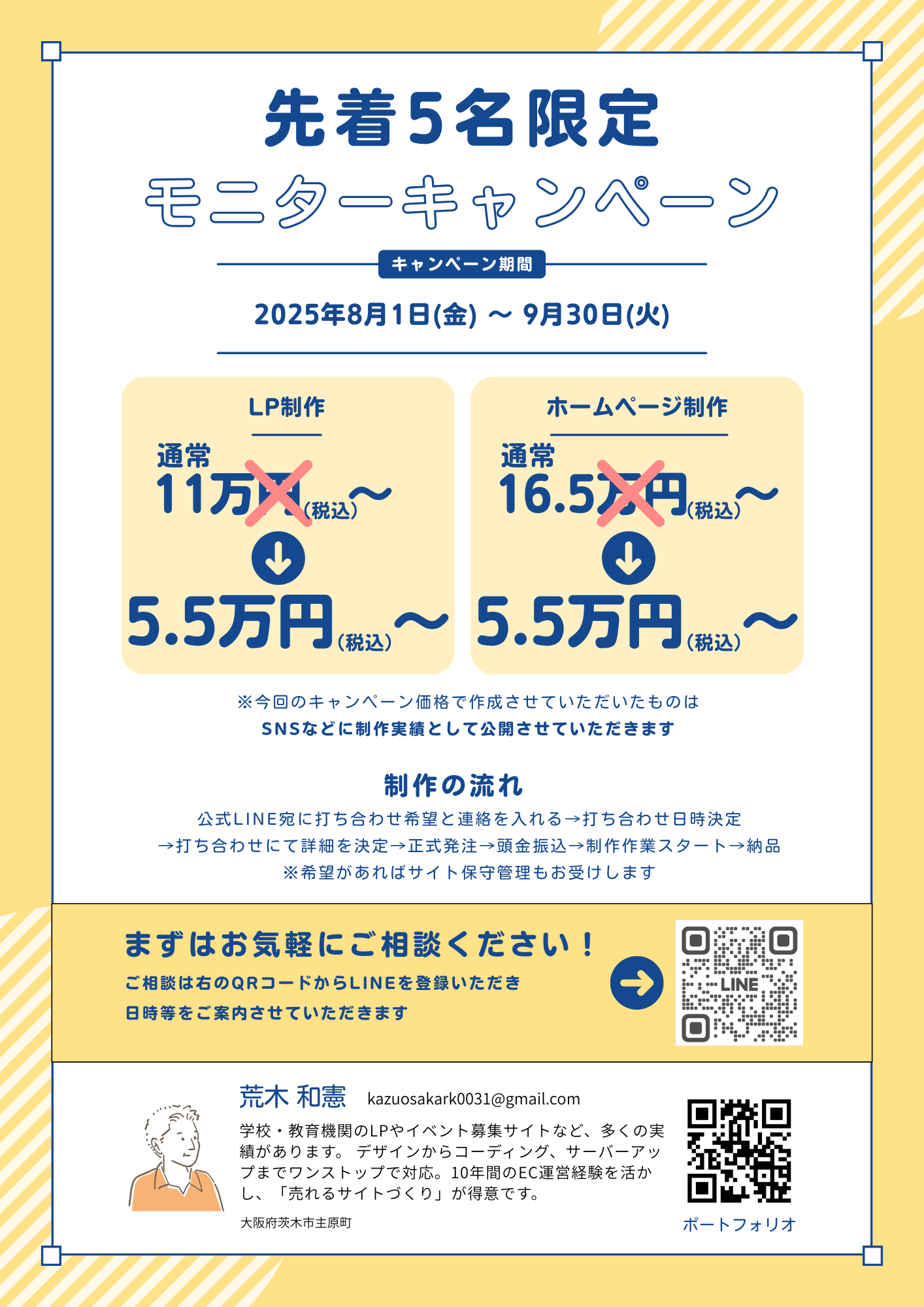 ・サイト運用/サーバー保守:1万円+税〜/月(年間契約)