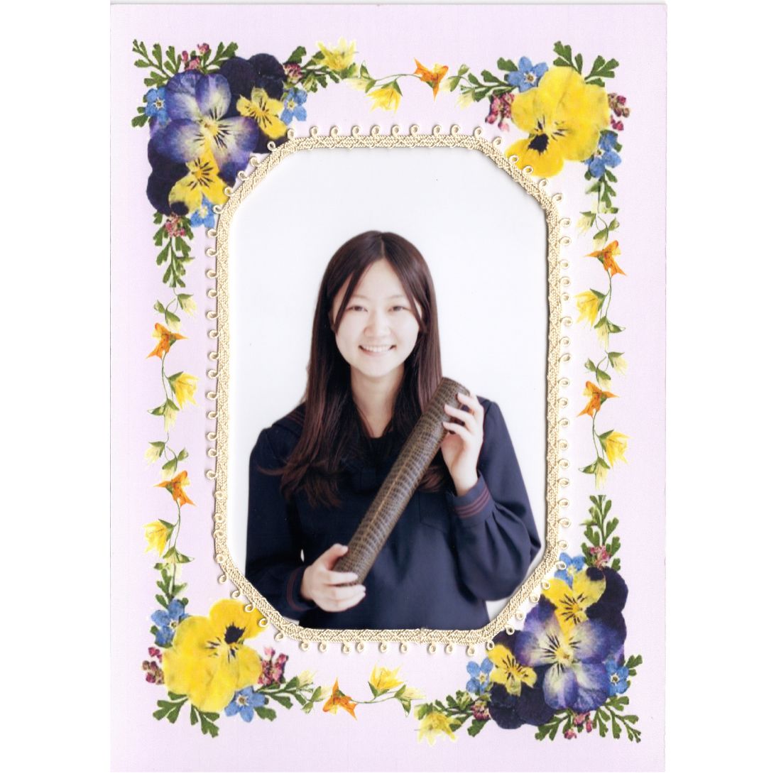 その押し花で制作し再現、独自技術でプリントを施しました。色が変わらず長く楽しんでいただけます。
