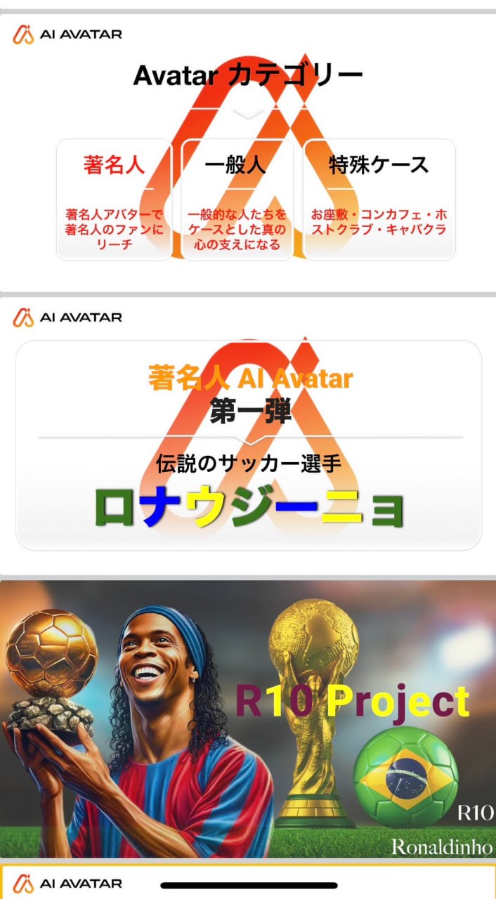 全身のAIアバターの第一弾は、あのサッカーの世界的レジェンド「ロナウジーニョ」‼️
