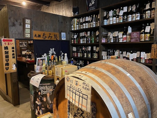 日本酒は元朝(がんちょう)篁(たかむら)の自社ブランド、芋焼酎は大阪府八尾市で生産された、夢シルクと言うサツマイモを使った「阿呆」(自社ブランドの日本酒・自社開発ブランドの芋焼酎の販売を中心に、全国の地酒を販売しています。