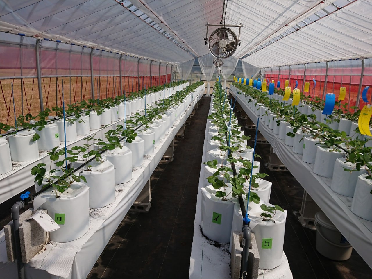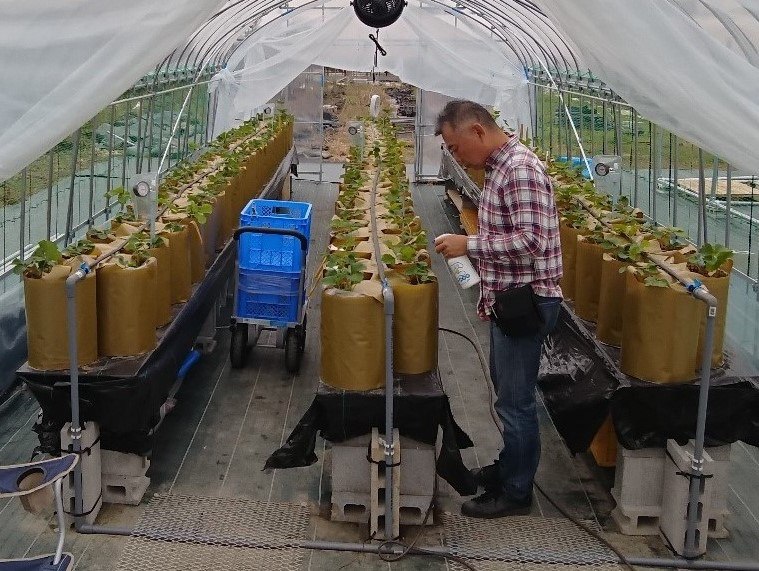 いちご栽培システム土工いちご(どくいちご)は立って楽に土で栽培できるシステムで、何処でも誰でもホームセンターから材料を調達し自ら組立て設置できます。よって初期投資が少なく予算にあわせた規模でいちご栽培が始められ数年で返済可能です。既存のシステムの1/3の価格です。システム設置から栽培、経営販売、資金調達。家庭菜園から農場まで丸っとサポートします。土で作ったいちごは美味しいです。
