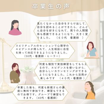 「卒業した後も、何度も講座に無料で参加でき、卒業生からアドバイスもらって練習もできるのでお得です。グループで練習もできます」(40代・占い師)