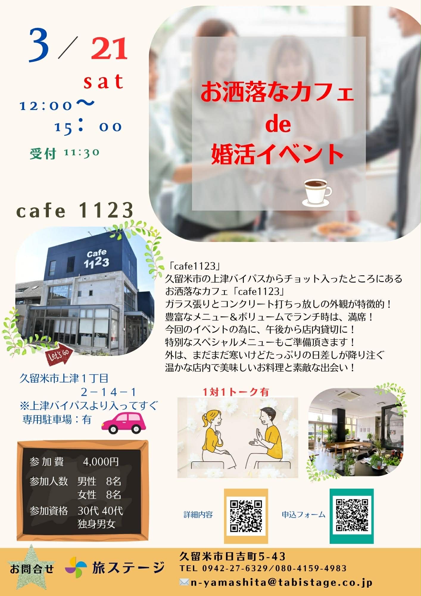2026年3月21日開催 「お洒落なカフェ de 婚活イベント」参加費4,000円