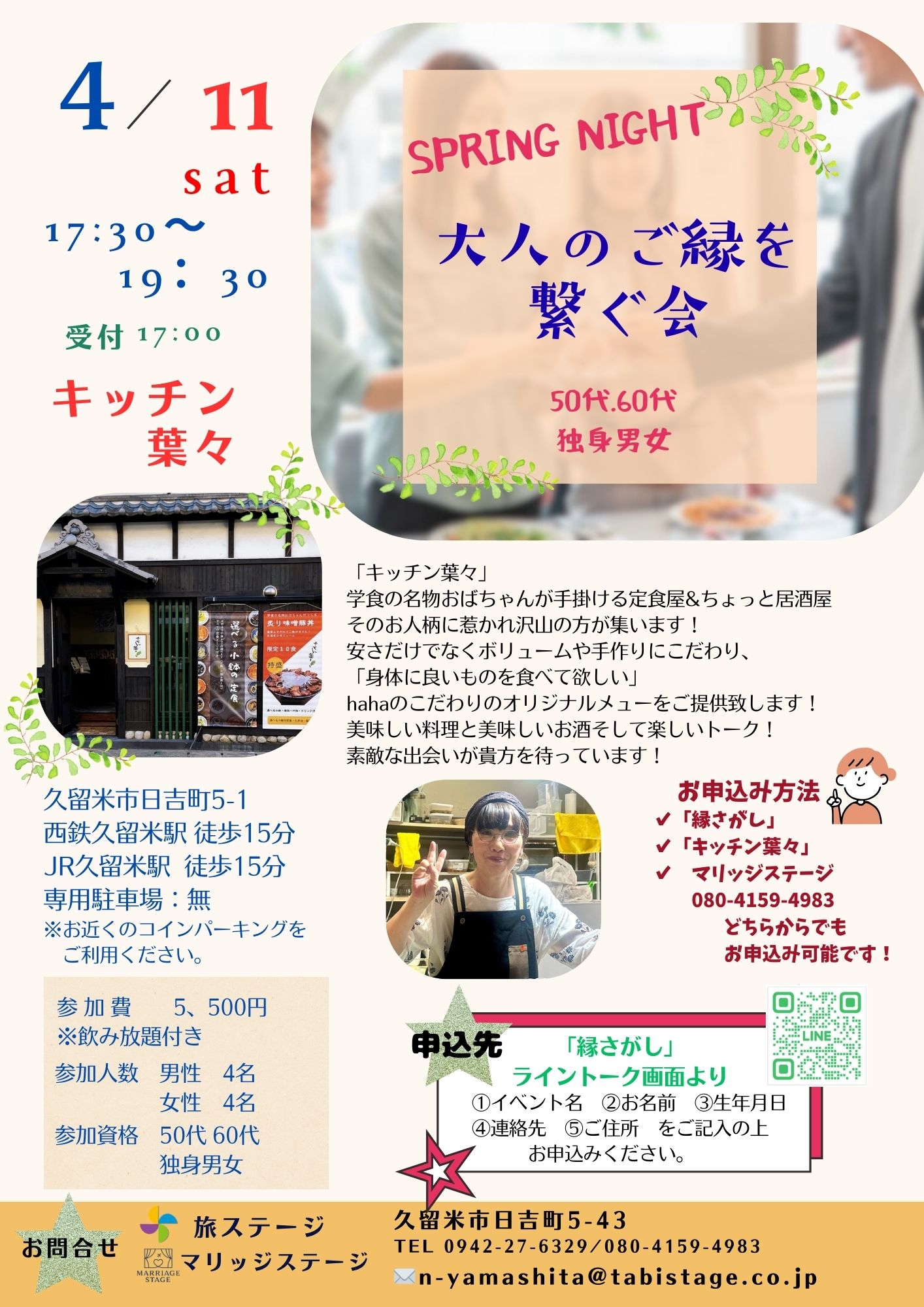 2026年4月11日開催「大人のご縁をつなぐ会50~60代」 参加費 5,500円
