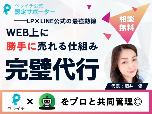 ペライチ認定サポーターがペライチLPとプロライン公式LINEで制作、1年間の無料サポート付!!