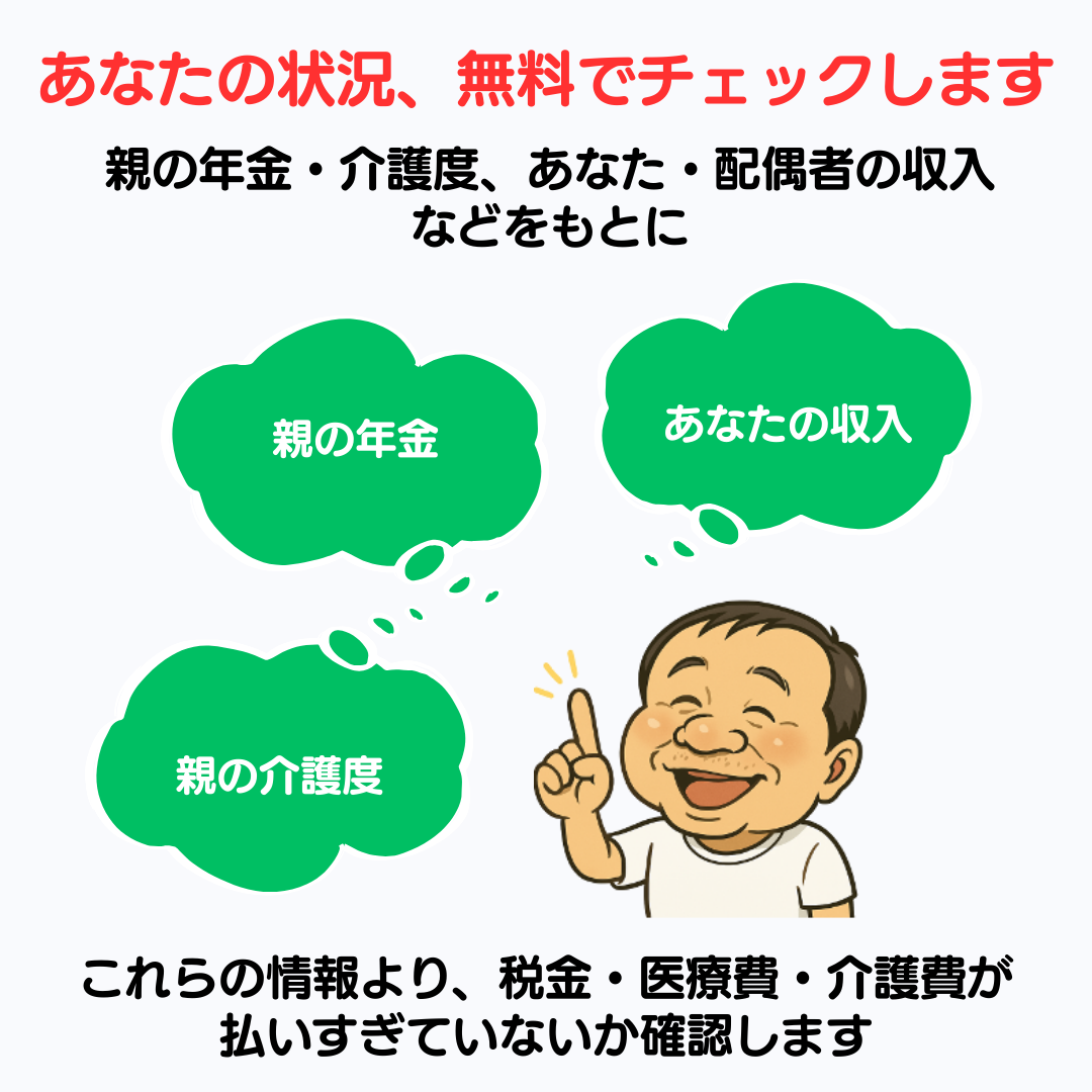 ご家族の年齢・収入・介護状況などをもとに、適用可能な控除や軽減制度を診断。