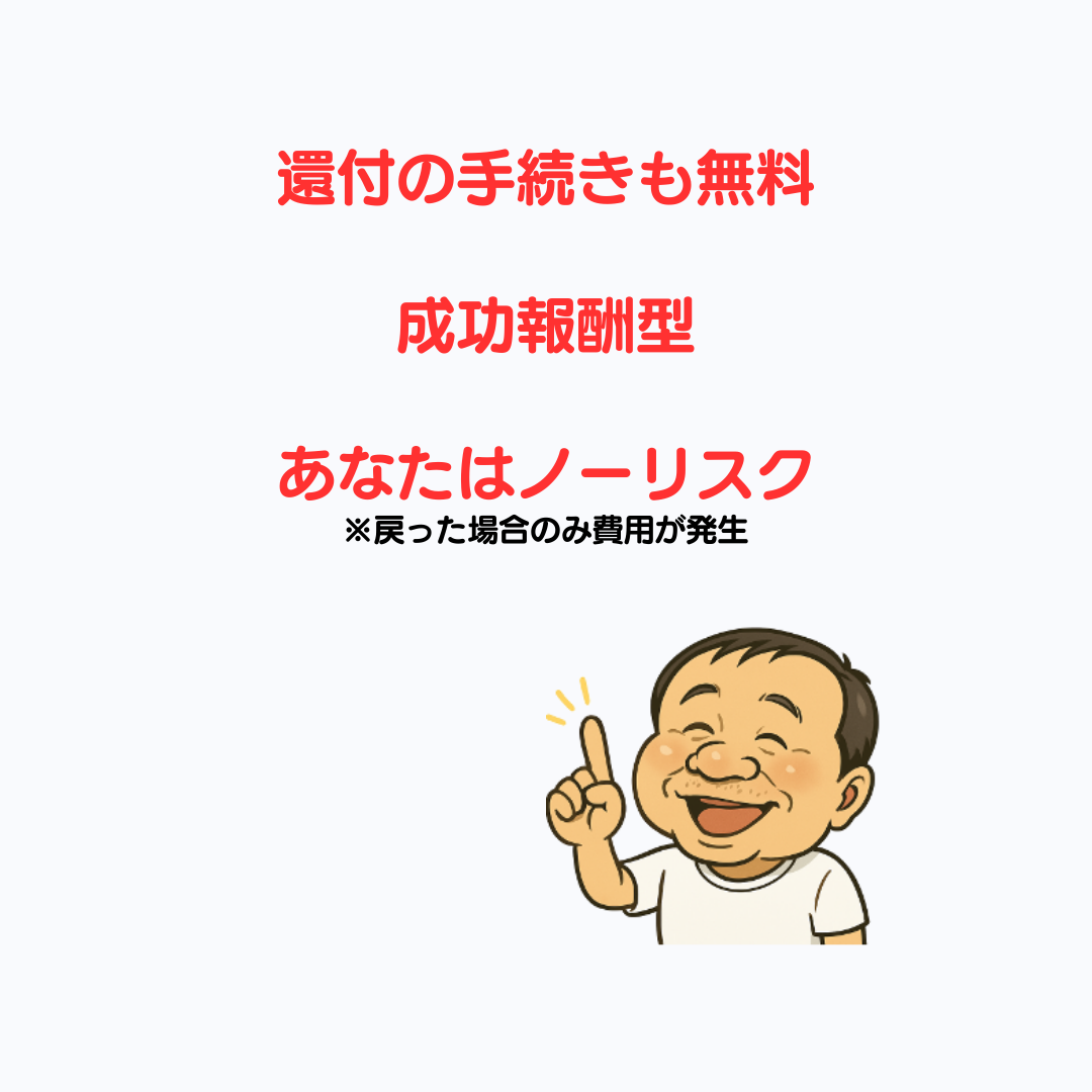 還付が発生した場合のみ、還付額の30%を手数料として頂戴いたします(成果報酬型)。