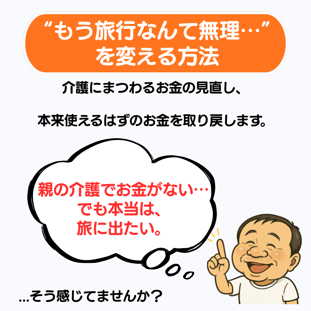 介護費や税金・保険料の見直しで、“払いすぎ”を減らし、旅行や心のゆとりを取り戻すサポートを行います。