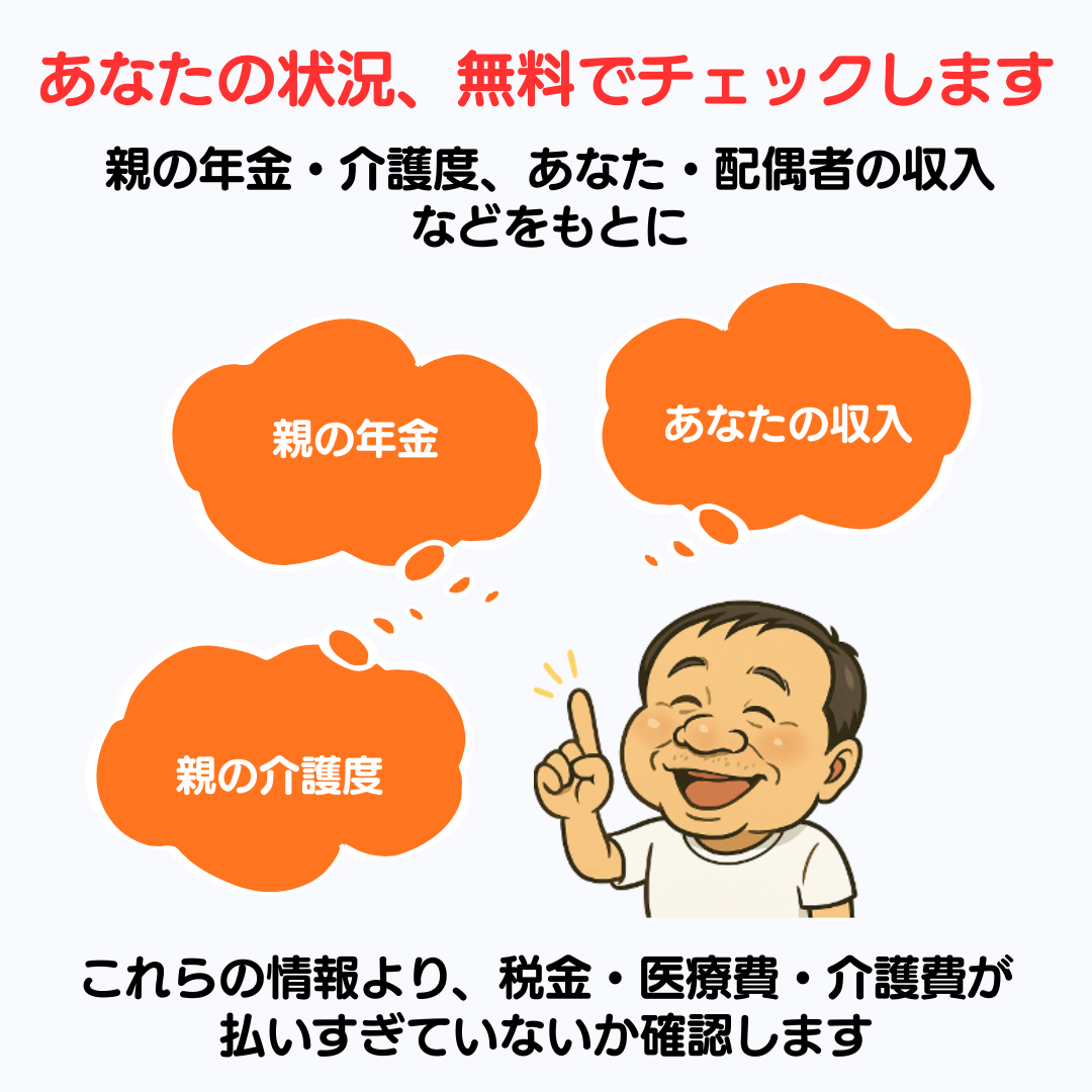 ご家族の年齢・収入・介護状況などをもとに、適用可能な控除や軽減制度を診断。