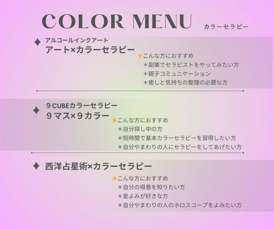 60分3500円(色の意味を知り、自分でできるセラピーの初級編)