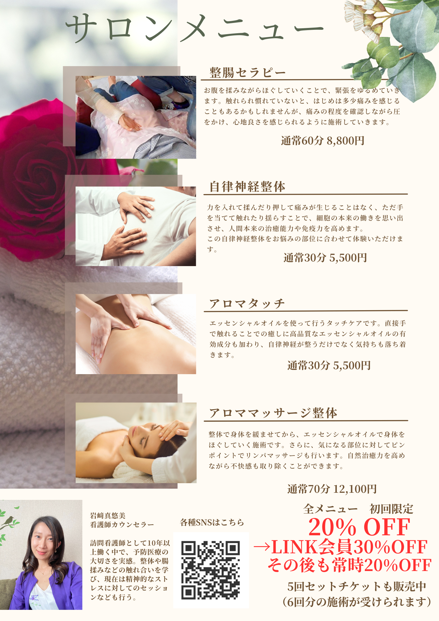 この自律神経整体をお悩みの部位に合わせて受けていただけます。