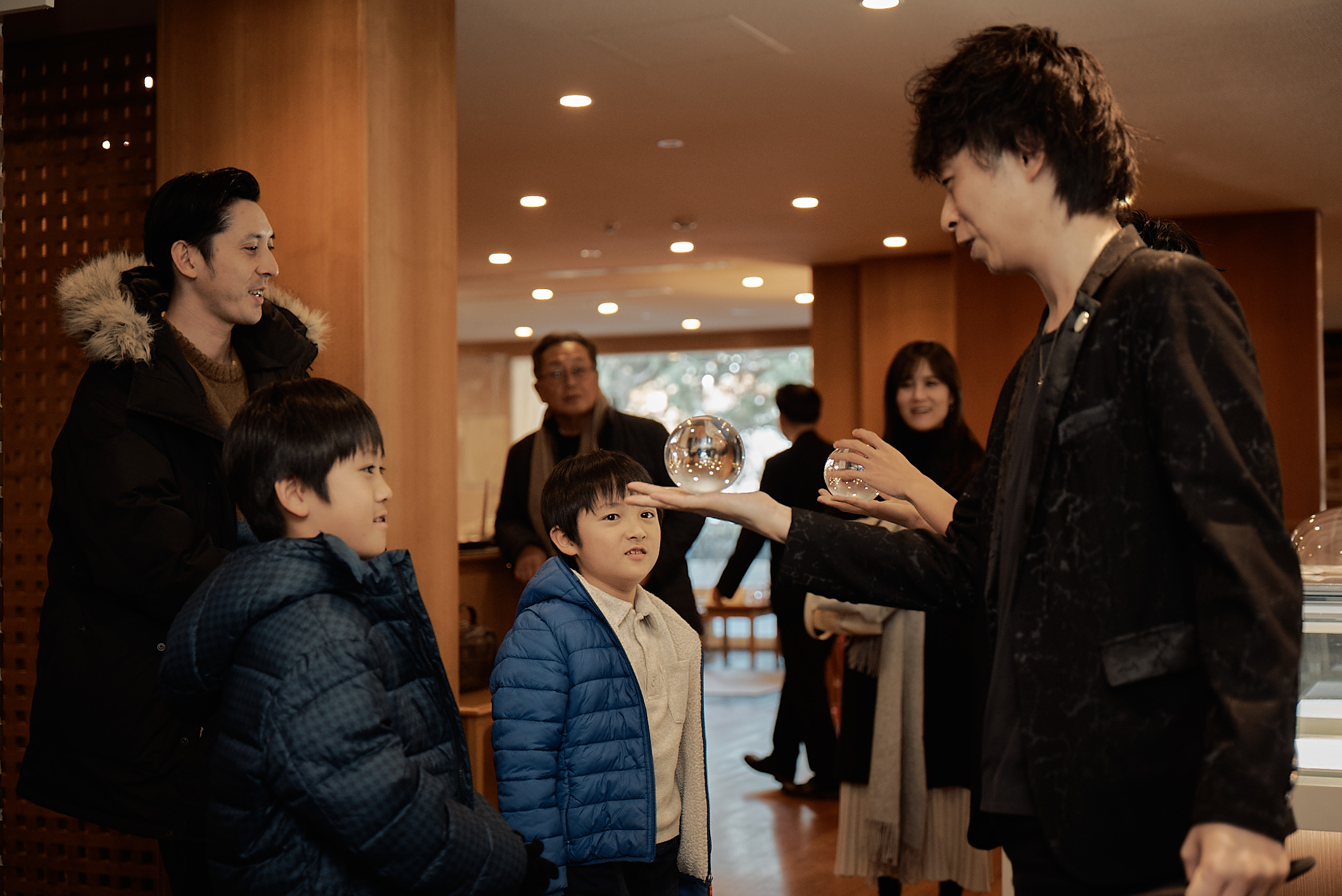 お客様の目の前、そして手の中で変化が起こることで、ショーというより「自分が体験する物語」として深く記憶に残ります。