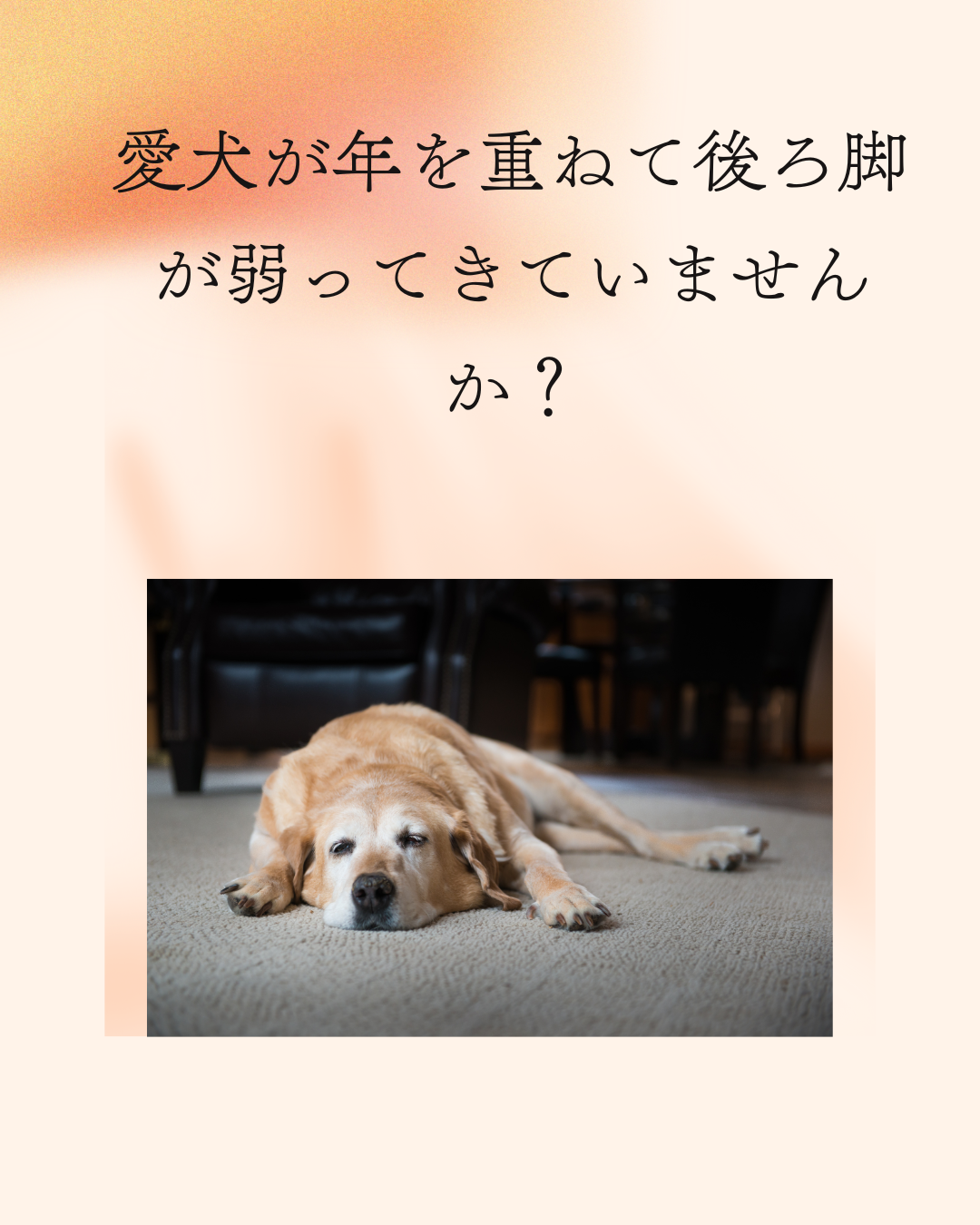 老いてきた愛犬が後ろ足を踏ん張れず、自力で立ちにくくなり、