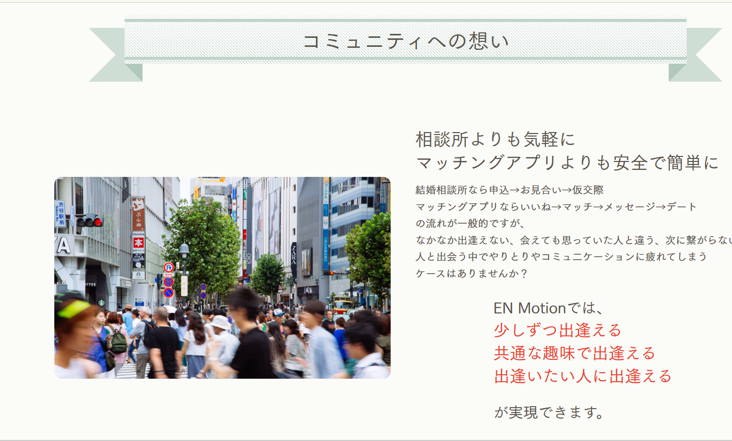 このコミュニティでは出会いをもっと簡単に、安全にをコンセプトに、