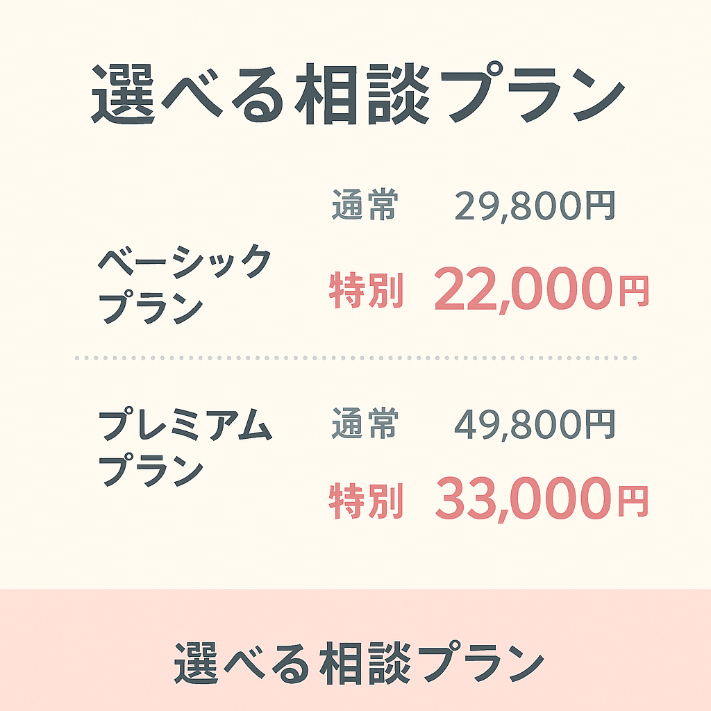 初めての方や、今の悩みや不安を一度整理してみたい方におすすめ。