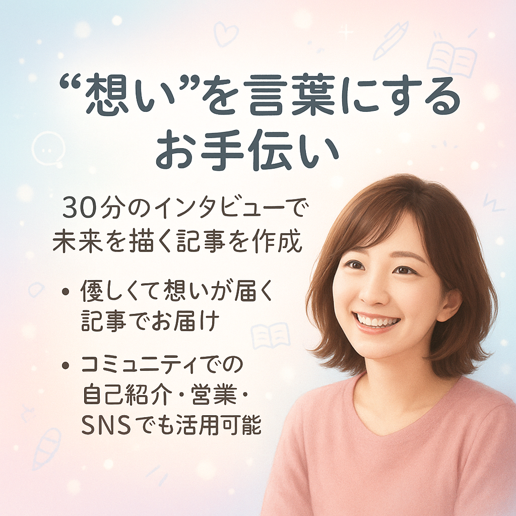 30分のインタビューで、あなたの夢や今の想いを丁寧に引き出し、