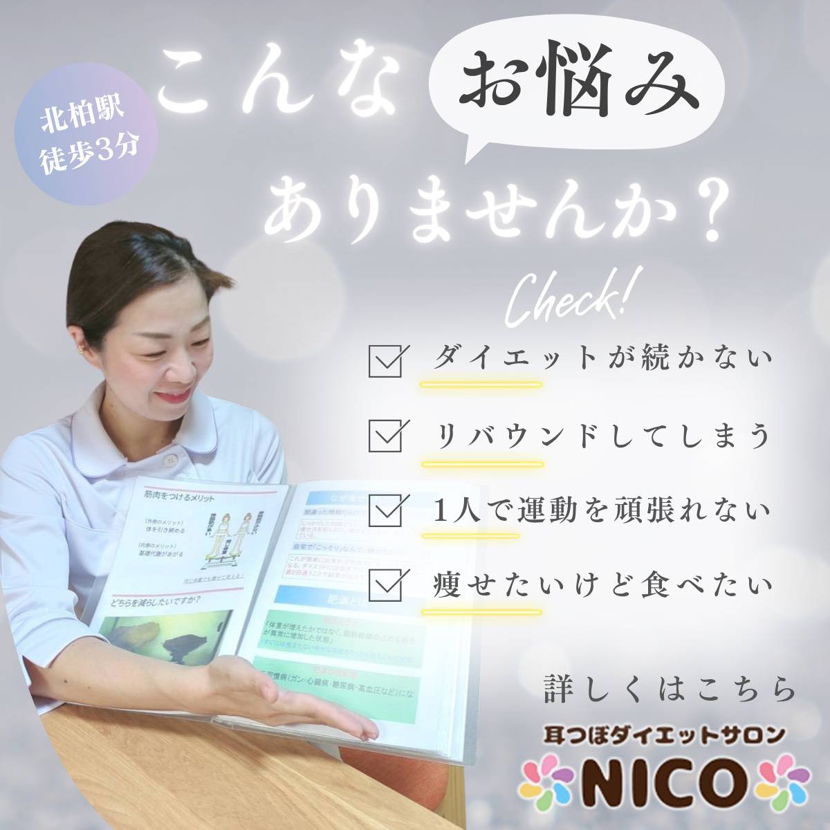 千葉県柏市北柏で耳つぼダイエットサロンNICOを経営しております店長の木村です(*^^*)