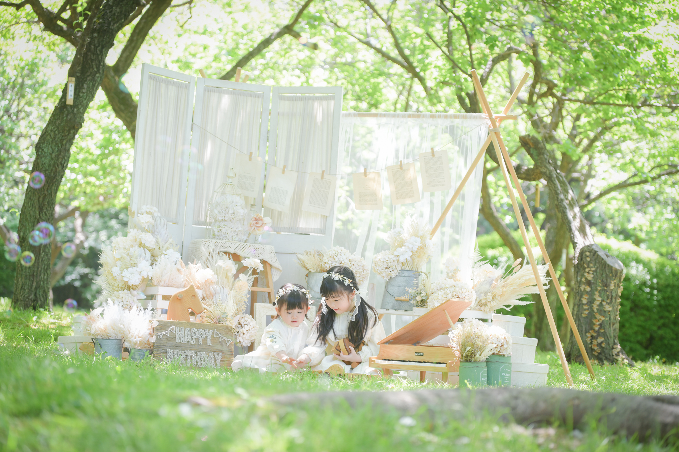 このように公園でフォトブースを用意して普段とは違う雰囲気で撮影が可能です。