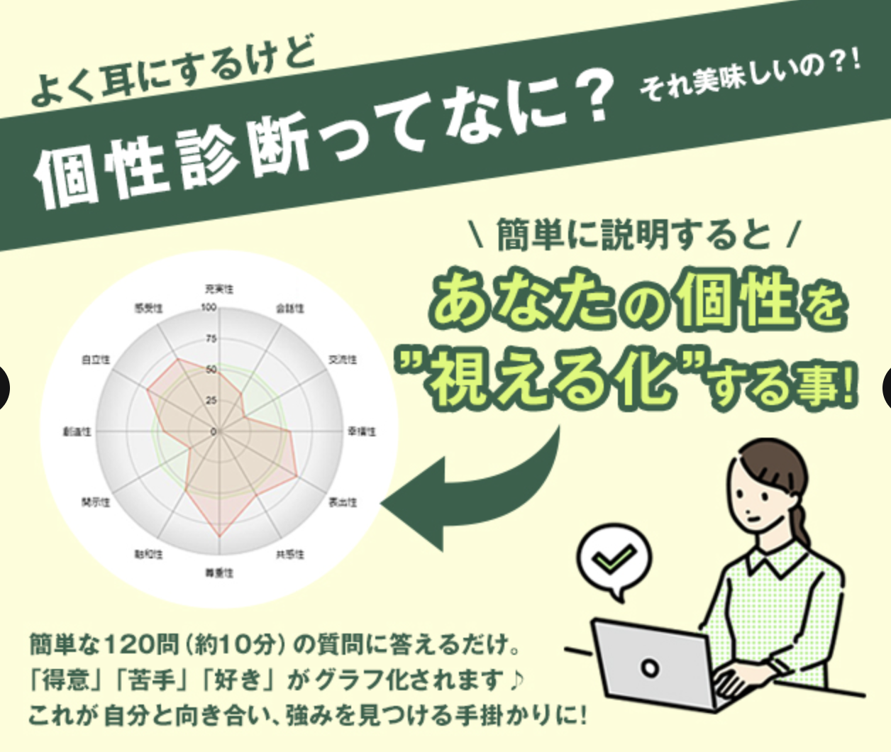 選択式の質問に答えるだけで、あなたの個性がグラフに可視化されます!