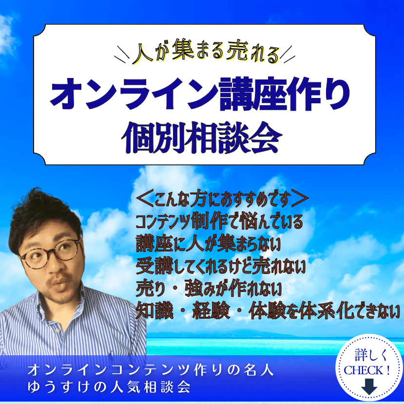 これまで1,000以上のオンライン講座を作ってきたぼくゆうすけがあなたの知識・経験・体験を体系化し、オリジナルのオンライン講座を設計します
