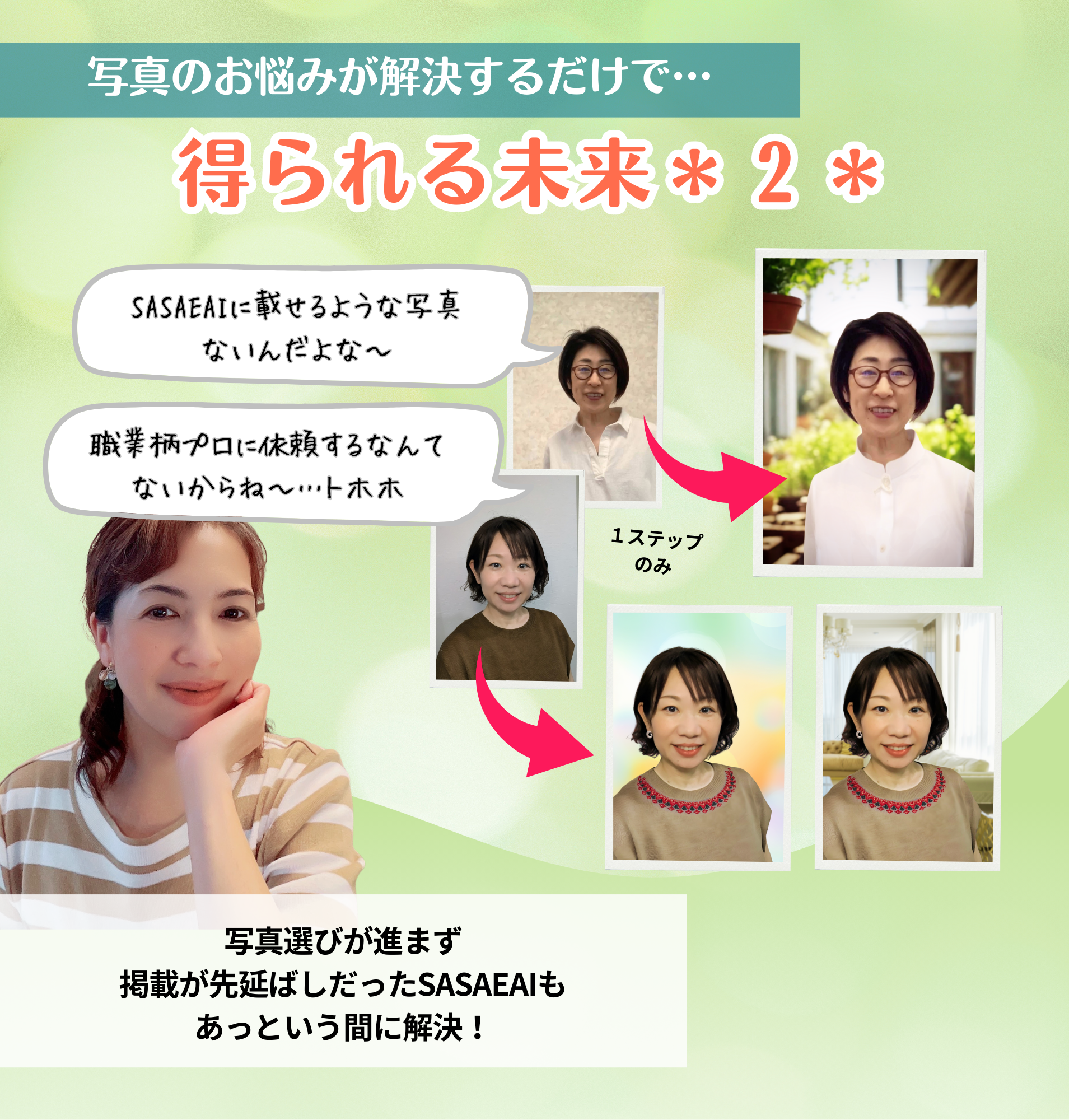 ⇒写真選びが進まず掲載が先延ばしだったSASAEAIもあっという間に解決し掲載!